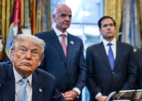 Part of the challenge for FIFA is that Trump has taken a particular shine to the World Cup, presumably because he has realized that it’s kind of a big deal. He essentially browbeat Infantino into holding the draw in Washington — it was originally planned for Las Vegas — and he keeps speaking about it as though it’s his personal plaything, like he can move matches around like pieces on a board game.