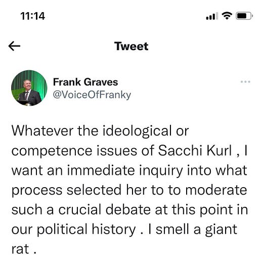 Look, we think the odds that the candidate in question here was a risk to anyone are astronomically low. A partially vaccinated woman, wearing a mask, keeping distance, and using a rapid test that day — we’re in lightning strike territory. Making an issue out of this is a little bit bullshit.